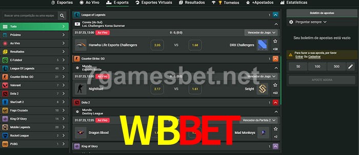 A aposta WBBet oferece aos jogadores a experiência mais conveniente de apostas em eSports!